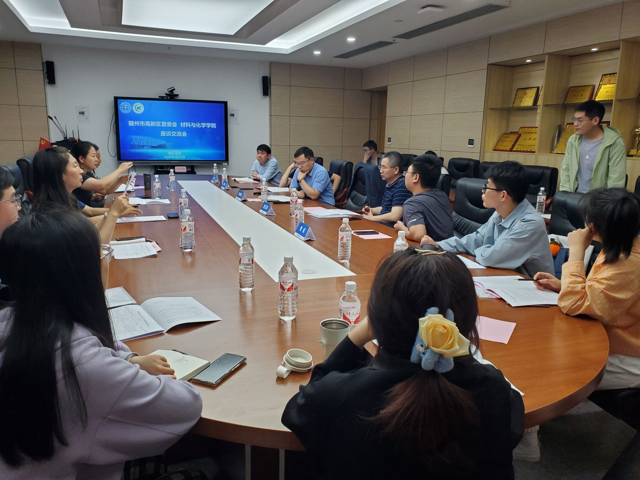 为落实公司春季促就业攻坚行动要求,全力以赴促进公司毕业生高质量充分就业2024年4月22日,beat365官网中文版本邀请随州市高新区管委会副主任史磊蕾、青春化工园区负责人李春满、社会事务局局长倪少锋、高新区中心公司工会主席靳娟一行四人来院就校地校企合作及毕业生就业招聘等事宜与公司师生代表座谈交流。公司党委书记梁本哲党委副书记白振洋材料系主任梁玉军办公室主任曾成,团委书记侯亚飞本研员工代表等参加座谈。