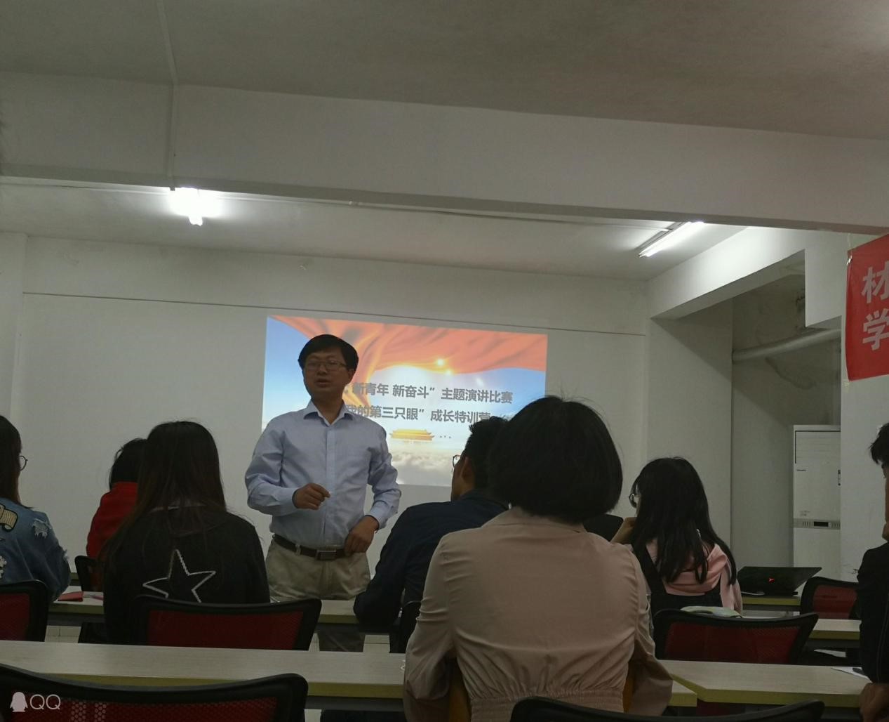 4月15日中午12:30,在63栋老员工学习支持中心三号学习室如期举行了2019年beat365官网中文版本的“新时代新青年新奋斗”主题演讲比赛暨“我的第三只眼”成长特训营院内初选。公司党委副书记余江涛老师、17级辅导员陈文婷老师和18级辅导员唐伟老师作为评委出席了本次活动。