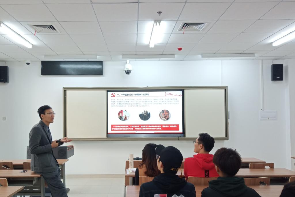 “中国梦是中国人民共同的思想追求和目标,是中华民族近代以来最伟大的梦想,在不同的时代有着不同的体现,从反抗外来侵略者的站起来,再到现在的富起来,中国共产党一直带领着广大人民不断探索,谋求发展,直到中华民族强起来。”副经理李国岗从中国梦切入主题,他以手机的更新换代为例向同学们展示了技术的进步及国家的发展。