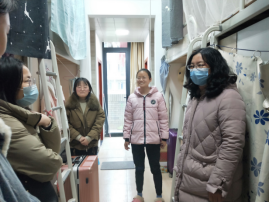 每到一处,老师们都与同学们亲切交谈,详细地询问大家寒假期间居家生活动态,新学期的学习安排,在生活和学习上遇到的困难和问题。叮嘱大家注意寝室卫生、安全用电、强化安全意识,鼓励同学们之间要相互理解,相互包容,努力营造一个安全、卫生、文明、和谐的宿舍环境。同时也希望大家把握这难得的大学时光和机遇,充分地利用有限的学习时间,增强自身的专业知识,为将来的实习和就业打下坚实的基础。