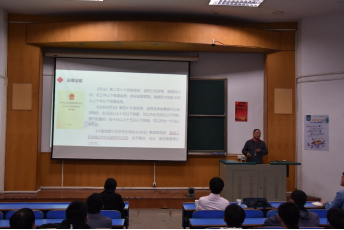 会议第一项,保卫处周日老师发表校园安全知识讲座。他针对校园中常见的治安问题以及诈骗问题等,向同学们普及安全知识,并从防盗,防骗两个方面入手,通过举出公司实发案例及相关法律法规的方式,提醒同学们注意保护好个人财产,预防各种形式的诈骗。