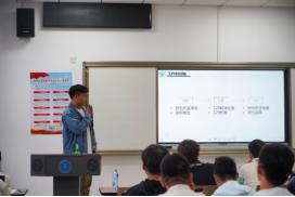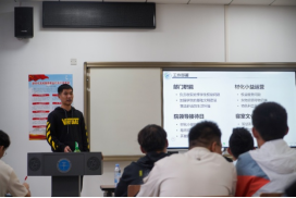 各部门介绍完毕后,经济管理公司员工代表谢琨淮进行发言,他首先代表经济管理公司全体师生向本次大会的顺利召开表示了祝贺;随后他从个人经历出发,分享了在员工组织工作的经验和感悟,他表示“做好分内之事” 是一名员工干部的底线,要在这个基础上互帮互助,向共同目标前进,更要主动思考,寻求创新;最后,他也向beat365官网中文版本新一届员工组织表达了美好的祝愿。