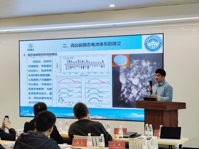 地大材化员工、航天八院上海空间电源研究所固态电池课题组组长吴勇民作项目路演报告