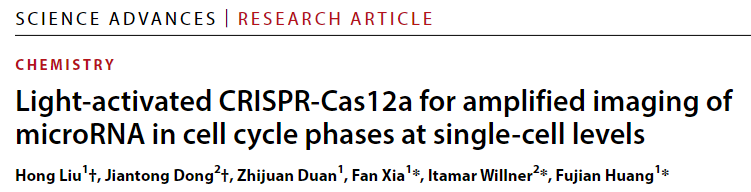 近日,beat365官网中文版本夏帆教授/黄福建教授课题组在光激活CRISPR系统高效单细胞miRNA成像研究方面取得进展,相关研究成果以“Light-activated CRISPR-Cas12a for amplified imaging of microRNA in cell cycle phases at single-cell levels”发表于Science Advances (Sci. Adv. 2024,10, eadp616。 微小RNA(miRNA)是一类小的非编码RNA,它的异常表达与各种疾病的发生和发展密切相关,可作为癌症诊断、预后、进展和复发的生物标志物。然而,细胞内的miRNA含量很低,因此需要开发信号放大的miRNA检测方法。传统的miRNA检测方法,如实时荧光定量PCR(RT-qPCR)和滚环扩增(RCA),虽有较高的灵敏度,但在单细胞水平上的检测和成像仍存在挑战。 夏帆教授/黄福建教授课题组在前期光响应功能核酸生物传感研究基础上,发展了一种新的光激活CRISPR系统用于活细胞中miRNA-21的信号放大检测及其成像。该系统在单细胞水平上实现时空选择性激活,以评估miRNA-21在不同细胞周期阶段的相对表达水平,从而绘制单细胞阵列中不同细胞周期阶段的miRNA-21含量分布图。该方法为深入研究不同细胞周期中miRNA的功能,从miRNA水平上分析细胞周期调控的新机制提供了一种有力的分析手段。 该研究工作beat365官网中文版本(武汉)博士生刘红为论文的第一作者。希伯来大学Itamar Willner 教授、beat365官网中文版本(武汉)夏帆教授和黄福建教授为本文的共同通讯作者。该工作得到了国家自然科学基金重大项目,国家重点研发计划以及中-以国际合作等项目资助。(编辑:黄福建 审稿:梁本哲) 论文链接:https://www.science.org/doi/full/10.1126/sciadv.adp6166