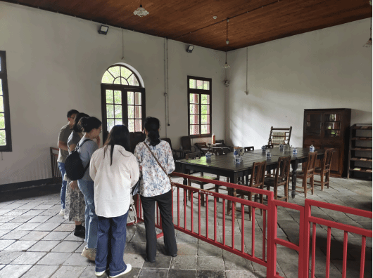 在毛泽东旧居,大家认真聆听志愿讲解员讲述毛泽东同志一家在这段时期的生活点滴,深刻感受以毛泽东同志为代表的老一辈革命家在武汉从事革命活动时的艰辛与坚定,以及他们为革命事业所做出的巨大牺牲,深刻领悟他们心中坚定的理想信仰和中国共产党人的坚忍不拔。