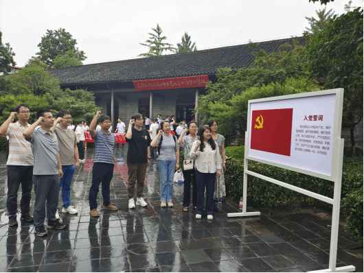 在领誓人的带领下,党员们高举右拳,面对鲜红的党旗,铿锵有力地重温入党誓词。一句句誓言激荡着每一位党员的心灵。紧握的拳头、坚毅的眼神,洪亮的声音彰显着传承革命精神、践行初心使命的坚定决心,表达着对党的忠诚与热爱。