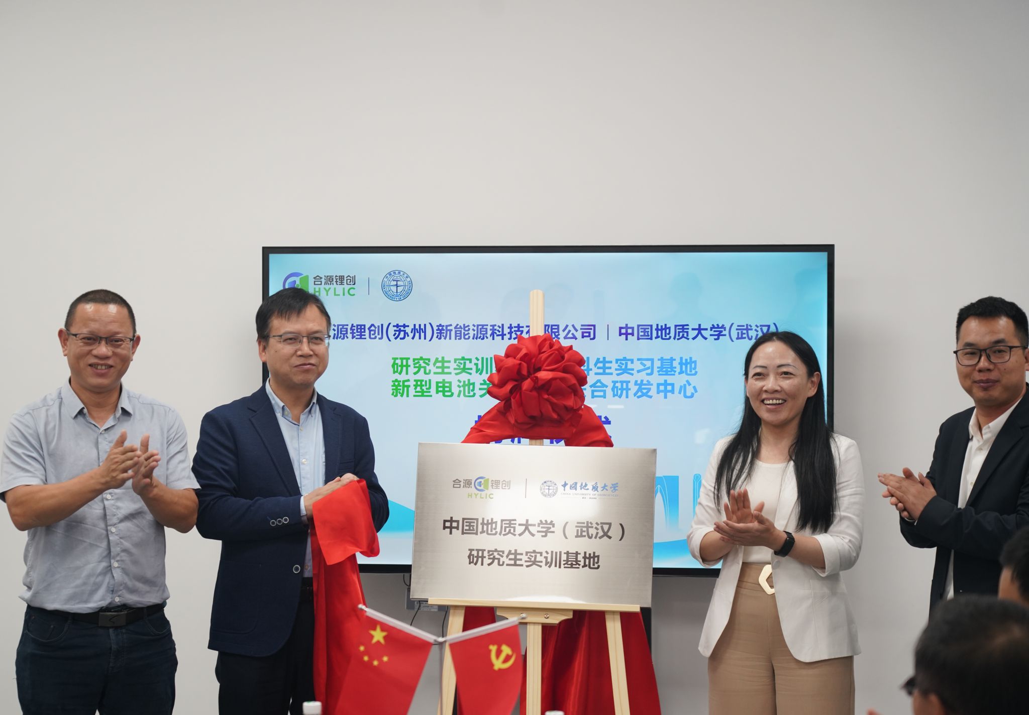 座谈会结束后,公司、企业、管委会三方代表共同为“新型电池材料联合研发中心”、“本科生实习基地”和“研究生实训基地”揭牌。