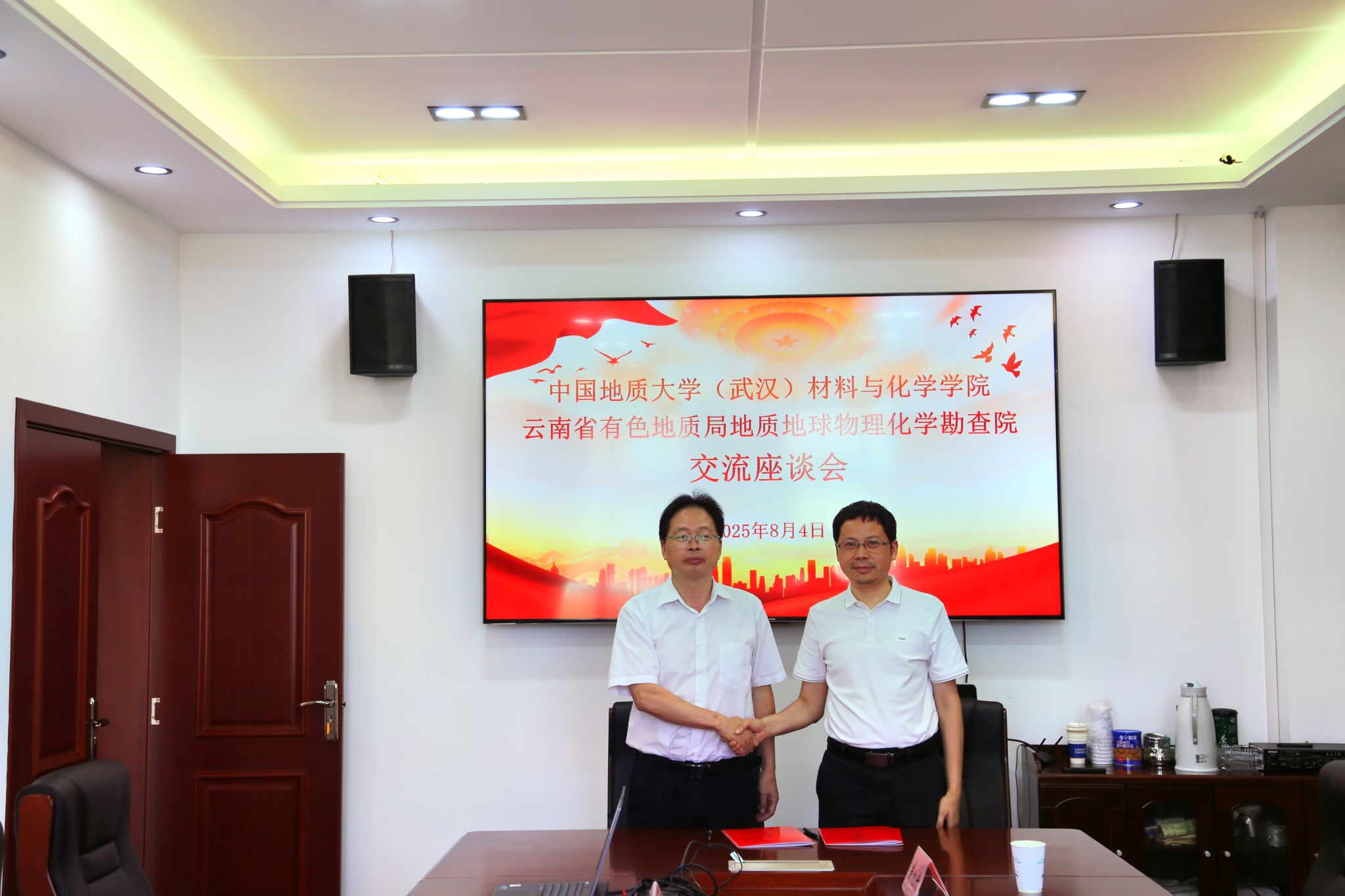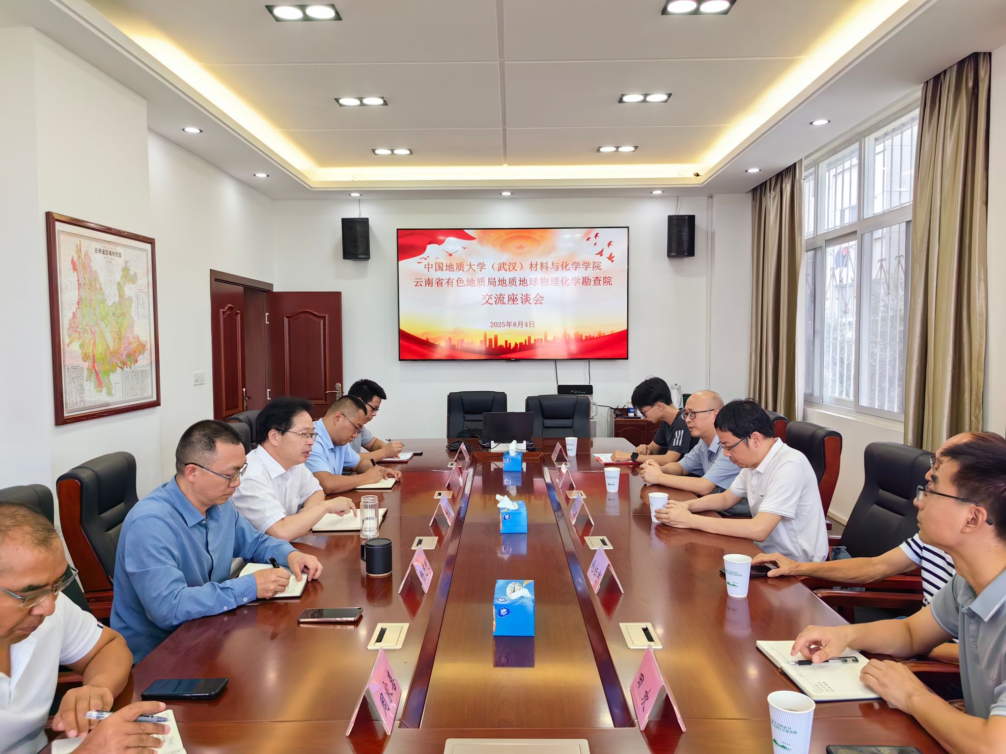 为深化产教融合,拓展实践育人平台,8月4日,公司经理胡兆初、教师代表鲍征宇、鲁立强、田欢和员工代表黄旭升赴云南省有色地质局地质地球物理化学勘查院(以下简称“物勘院”)开展专题调研交流,并举行共建“本科卓越工程师培养计划培训基地”挂牌仪式。