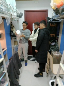 最后,公司领导和老师对各宿舍的安全卫生情况进行了检查,针对检查过程中发现的不规范行为进行了强调和纠正。同学们也表示将提高安全意识,与室友共同努力营造一个安全、文明、卫生的生活环境。在走访52栋306“百佳”寝室时,黄书记对该寝室的卫生环境进行了表扬,并邀请随行班长们进行参观,号召大家向他们学习。