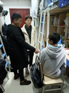为及时了解员工返校情况和思想动态,保证同学们拥有良好的学习生活环境,2月20日七时许,公司党委书记黄菊和2021级辅导员李双越、2019级辅导员黄玲以及班级主要干部一同走访了员工宿舍,探望慰问返校员工,南望山校区与未来城校区同时进行。走访过程中,公司领导和老师与员工们亲切交流,询问他们开学后的感受,强调疫情防控相关要求,并对员工们在生活中存在的疑虑和问题进行解答。同时黄书记对同学们新学期的学习生活提出相关建议,希望大家在新学期养成良好的生活作息,保持积极向上的学习状态,提醒同学们在学习与生活中遇到任何困难问题都要及时与老师沟通交流,鼓励同学之间要相互理解,相互包容,充实地度过新学期。