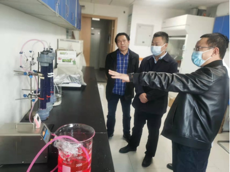 郑经理一行首先参观了储能与环境催化团队实验室,重点考察了有机污染水动态氧化处理系统,对该系统快速、高效清除有机染料的研发成果表示高度认可,建议尽快开展放大实验、并将其与工业处理中的芬顿氧化进行对比。