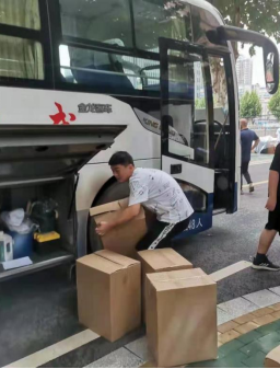 在整个工作过程中,令人感动的一幕幕不断呈现在眼前。公司党委书记黄菊,副经理公衍生、李国岗、周炜,院直李晓晔、唐伟等公司领导老师在未来城接车点将一件件行李一趟趟搬运上宿舍楼;在南望山搬运流水线的摆放岗位,公司党委副书记余江涛边搬边指引讲解如何摆放行李,做到有序高效,并到车里和同学们一起摆放行李,站到车厢最里处将同学们每一件行李有序搬到车内;学务指导老师鲁立强亲自进入狭窄的客车货厢为同学们合理摆放物品;在大雨倾盆之时,班主任李季、万沙等老师悉心地为行李“撑伞”;辅导员陈文婷、侯亚飞等老师在帮忙搬运行李的同时,调运车辆、组织员工、核准人数和行李,使整个现场忙而不乱。井然有序;男生们肩扛手提,帮女生一包包、一件件地把行李从宿舍搬运上车,尽显绅士风范;室友间相互帮助,你帮我抬、我帮你提。这一幕幕场景,令每一位亲身参与者都倍感动容。