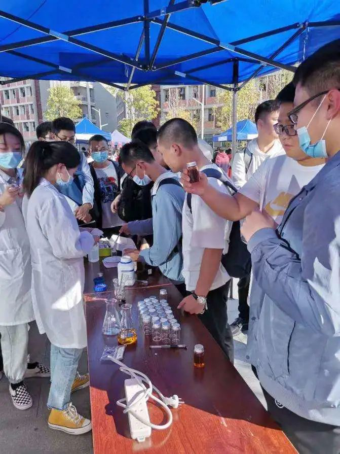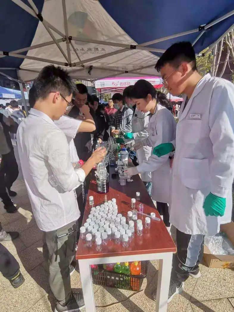 “变色比变脸还快的无色溶液”、“晶体撒入水中形成冰花”、“自制鸡蛋黄鱼子酱”...11月12日下午,这一幕幕神奇的场景真实地上演在beat365官网中文版本(武汉)第十五届“身边的化学”实验展演现场