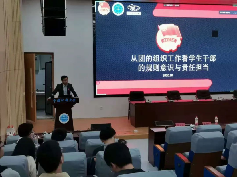 10月24日,校团委副书记谭文伦老师以“从团的组织工作看员工干部的规则意识与责任担当”为主题,结合当前校团委的主要工作,向员工骨干们介绍了身为一名员工骨干应有的责任与担当。谭老师从培训模式、培训效果出发,向同学们阐述了新生骨干培训的重大意义,并告诫员工骨干:务实不懈怠,学习无止境,创新高站位,谦逊永躬行。