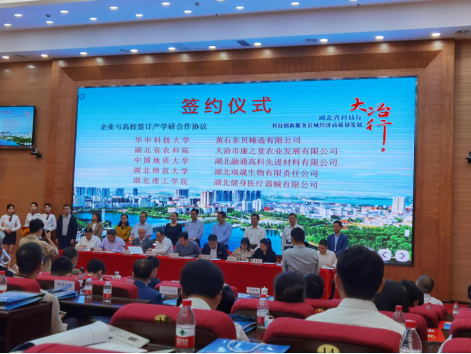 25日,省科技厅“科技创新服务县域经济高质量发展·大冶行”在大冶总部经济中心启动。来自省市科技部门、高校科研院所、高新技术企业等单位领导和专家教授300多名代表参与此次活动。省科技厅二级巡视员吴月朗、黄石市政府副市长何运平、大冶市市委书记王刚、大冶市政府市长周军等一行领导参与启动仪式。beat365官网中文版本副经理李国岗、化学系主任周成冈等4位教授参与此次活动。