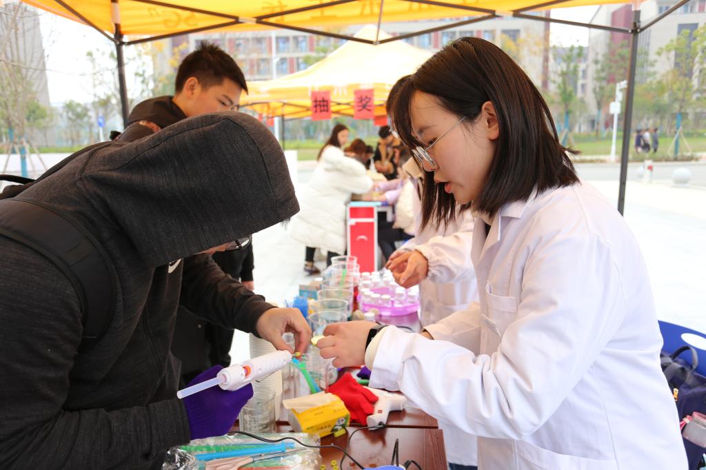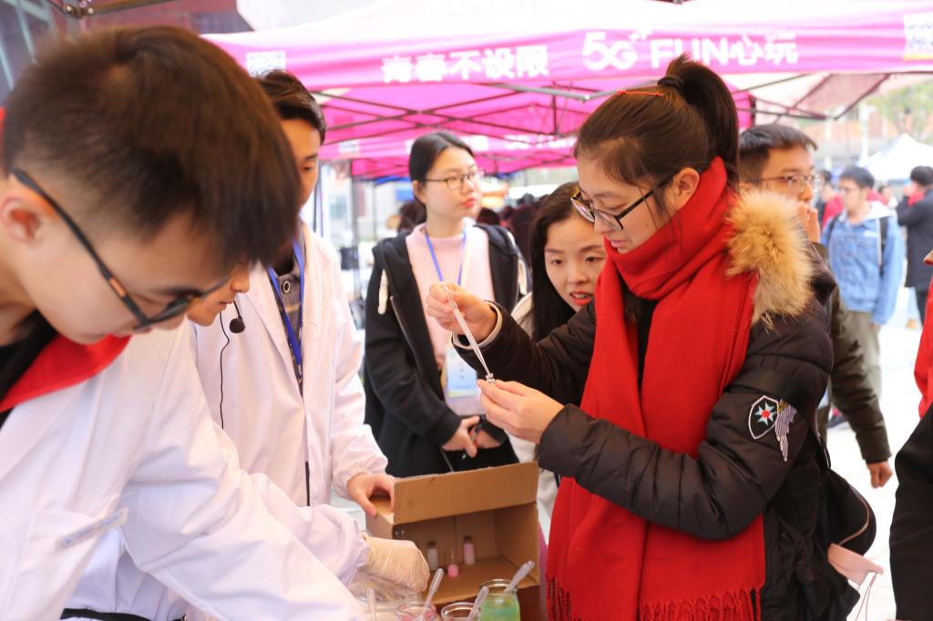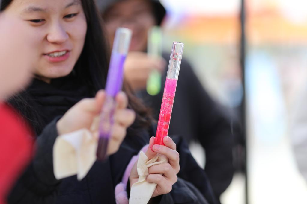 “一杯矿泉水摇身成为草莓牛奶”、“隐形墨水传递神秘信息”、“飘落的树叶如何定格为书签”、“钻石和花朵结合成为晶枝玉叶”、“未来城校区的第一场雪”...11月28日下午,这一幕幕神奇的场景真实地上演在beat365官网中文版本(武汉)未来城校区老员工活动中心南广场上。