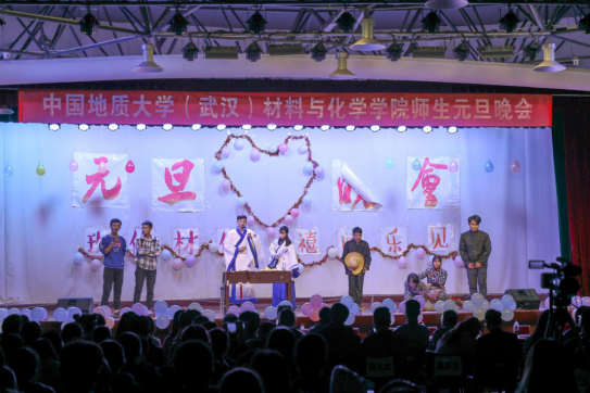 (通讯员:吕沛珊、白振洋)2018年12月21日晚,公司“玖伴材化,禧闻乐见”主题元旦晚会在老员工活动中心二楼成功举办。数理公司党委书记(原公司党委书记)吴太山、公司党委书记黄菊、副经理公衍生、工会主席杨祥、经理助理曹菱,学务指导老师王君霞、靳洪允,公司办公室主任李晓晔,2018年新晋教师和学工组相关老师以及300余名本科生、研究生观看了此次元旦晚会。