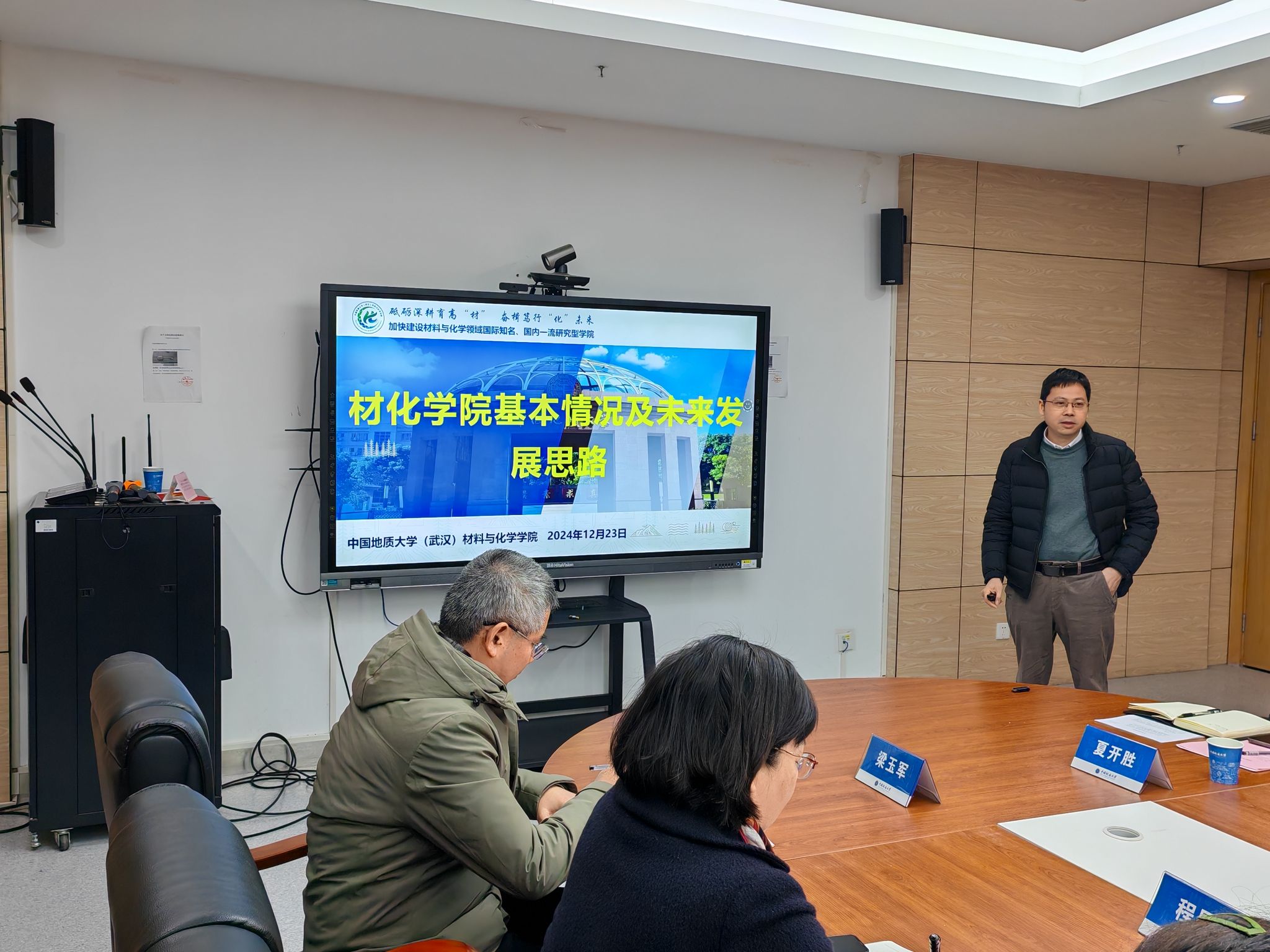 经理胡兆初汇报公司整体工作。他分别介绍了公司基本情况、2024重要工作进展及成绩、战略目标与发展定位、未来发展思路。他指出,在公司领导及各职能部门的关心支持下,2024年公司在人才培养、科学研究、团队队伍建设、团队建设及对外合作等多个方面取得可喜成绩。他表示,公司将继续紧扣“四个面向”与国家战略需求,持续深化产教融合联盟内涵建设,加大有组织推进校企科技合作与人才联合培养力度,全面提升大仪平台对外服务能力,全力筹备做好材料与化工专业博士授权点申报,为公司高质量发展奠定坚实基础。
