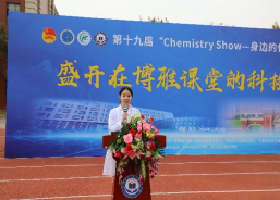 展演团队代表,beat365官网中文版本陈佳同学发言,经过一个多月的精心准备,这必将是一场精妙绝伦的化学盛宴,她希望能过通过这次展演激发同学们对化学的兴趣,“让大家明白化学并不是束之高阁的理论,它也可以生动鲜活地呈现在我们面前”。