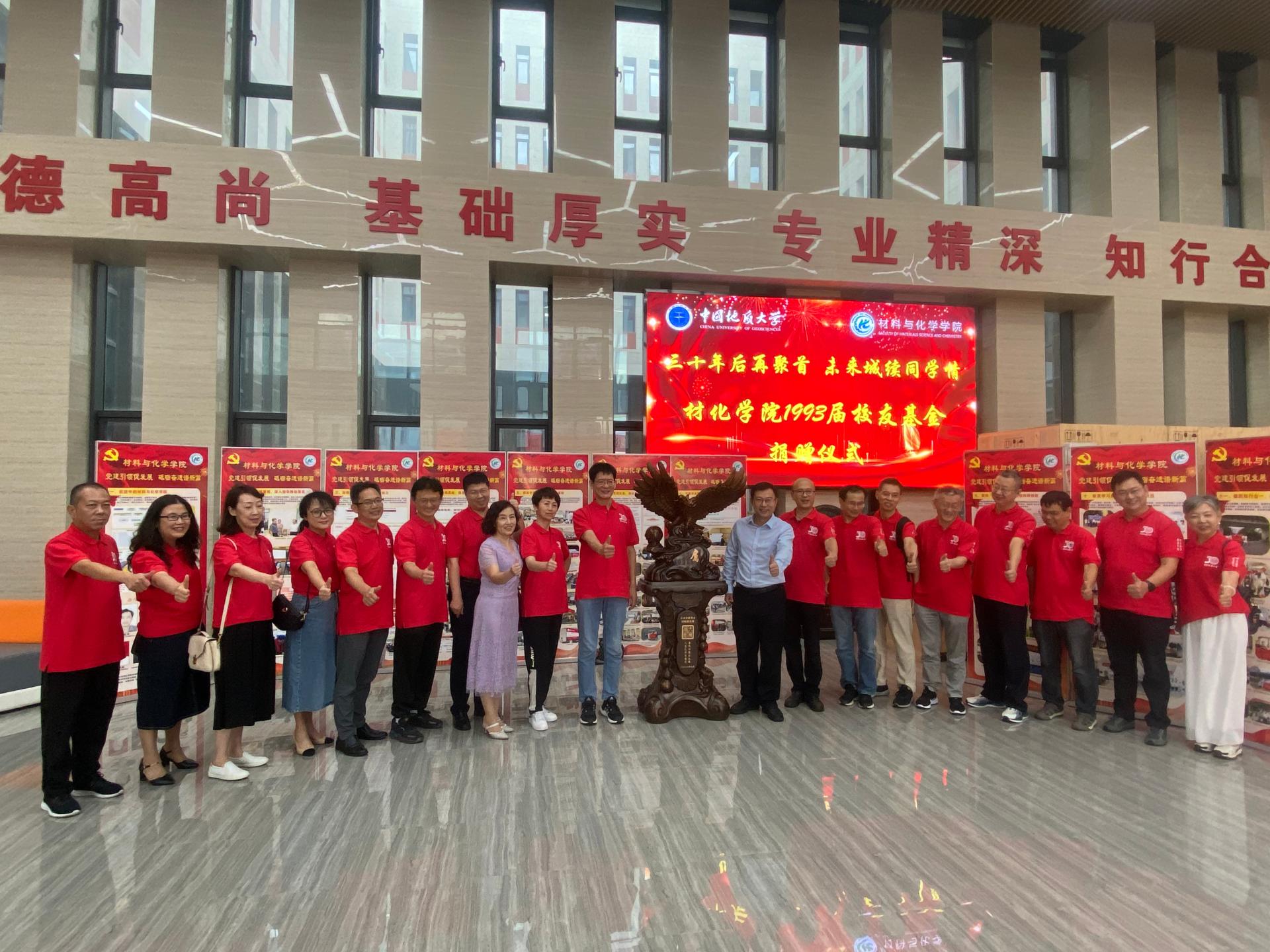 座谈会结束后,师生一行在材化楼合影留念,梁本哲和员工代表王增荣为员工捐赠的纪念品“雄鹰凌云”进行揭幕。摆件寓意学子接受公司和老师的教诲后,立凌云志,报效祖国,报效人民。摆件下方刻有“春风卅载应化雨,人生几许当凌云”的对联,上联中春风化雨是用典,表达同学们对母校妈院老师教育培养的感谢,并嵌入了“应化”,表示应用化学系和应用化学专业。下联中人生几许表示时光宝贵,学子们在公司老师的教育培养下,应当把握当下,立凌云志,为祖国建功立业。
