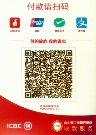 六、会议注册及防控要求 (1)会议注册费 1800元/人(含餐费、场地费、会务费、会议资料费、茶歇、会议专项服务费等费用;2021年9月25日前汇款注册的收取1500元/人);在校员工凭员工证参会收取800 元/人。住宿费自理。请汇款至下列账户或扫描下方二维码,并由中国硅酸盐学会开具发票。 转账请务必注明“矿材+姓名”,汇款后请尽快将汇款回执(截图)及开票信息发送至邮箱13466774499@163.com。 汇款账号:0200001409014435189 户名: 中国硅酸盐学会 开户银行:中国工商银行北京百万庄支行